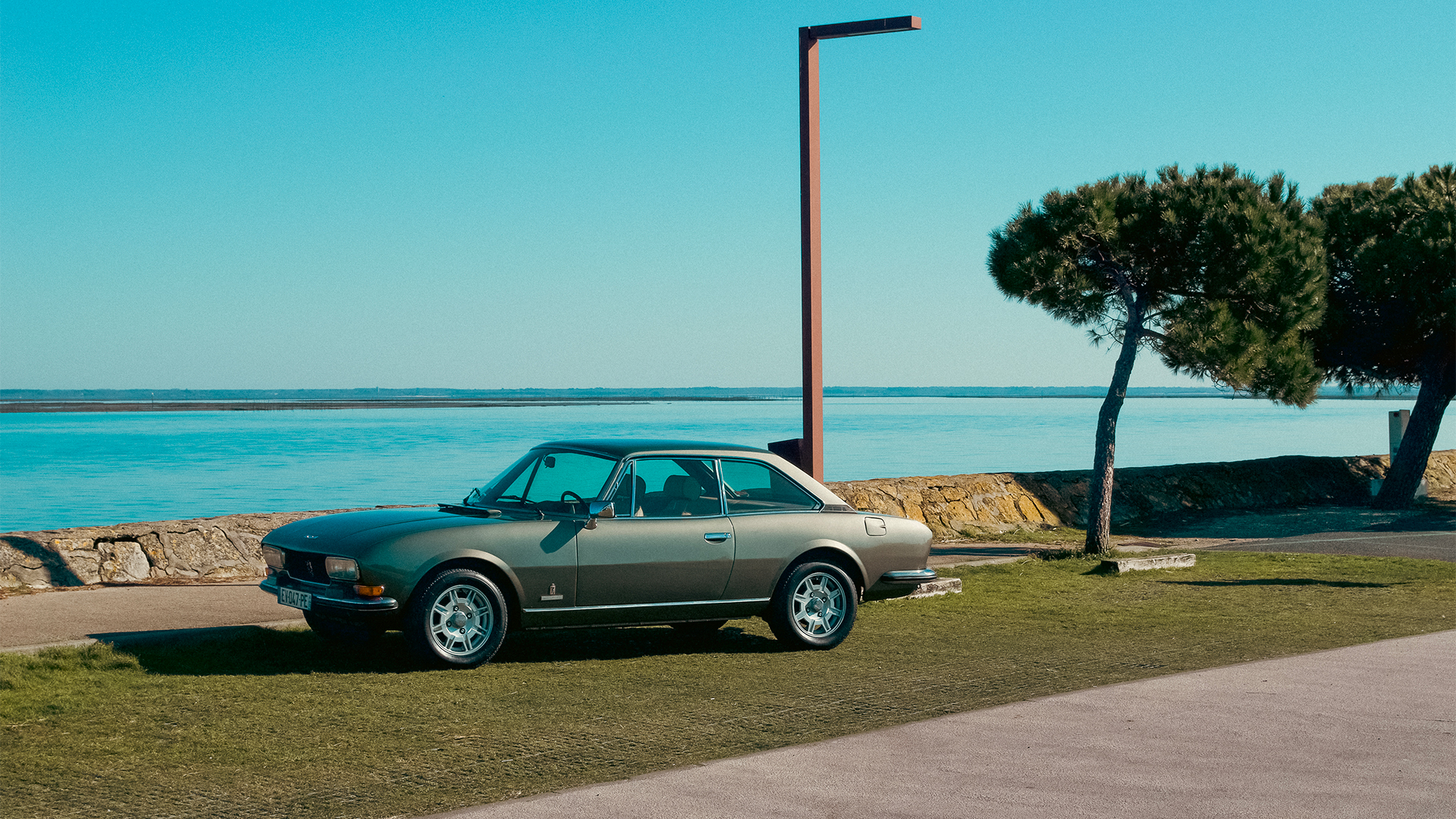 Shooting photo d’une Peugeot 504 sur le port d’Arcachon, pour un client confidentiel.